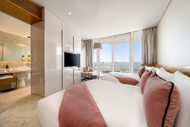 Savour stylish luxury with two queen beds, balcony and Dubai vistas.