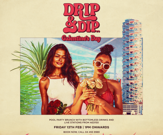 Dive headfirst into a Galentine’s Day edition of Drip & Dip, on 13 February from 1pm, where we’re turning up the heat on Dubai’s hottest Friday brunch. Expect bottomless sips, global cuisine and high-energy poolside vibes, soundtracked by our resident DJs and live entertainment. From the first splash to full pool party mode, this girls-day takeover turns the volume all the way up at MiMi’s Pool Club.