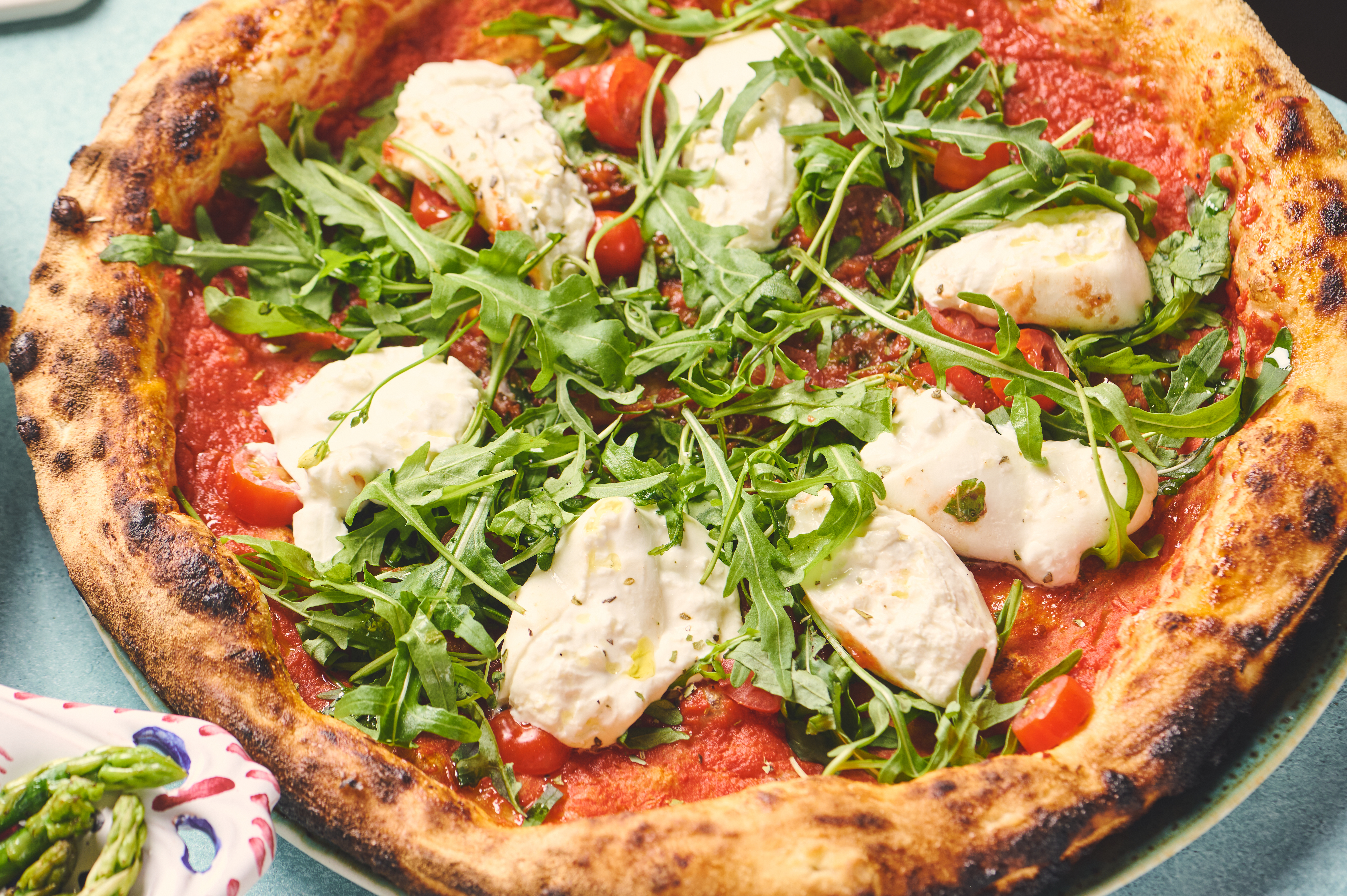 The quattro formaggi is a cheese lover’s dream. This indulgent dish brings together buffalo mozzarella, gorgonzola, taleggio, and grana padano for the creamiest, richest bite. Another standout is the burrata pizza. Creamy burrata paired with juicy datterino tomatoes, fresh rocket, and a crisp crust making this pizza a fresh and luxurious treat.