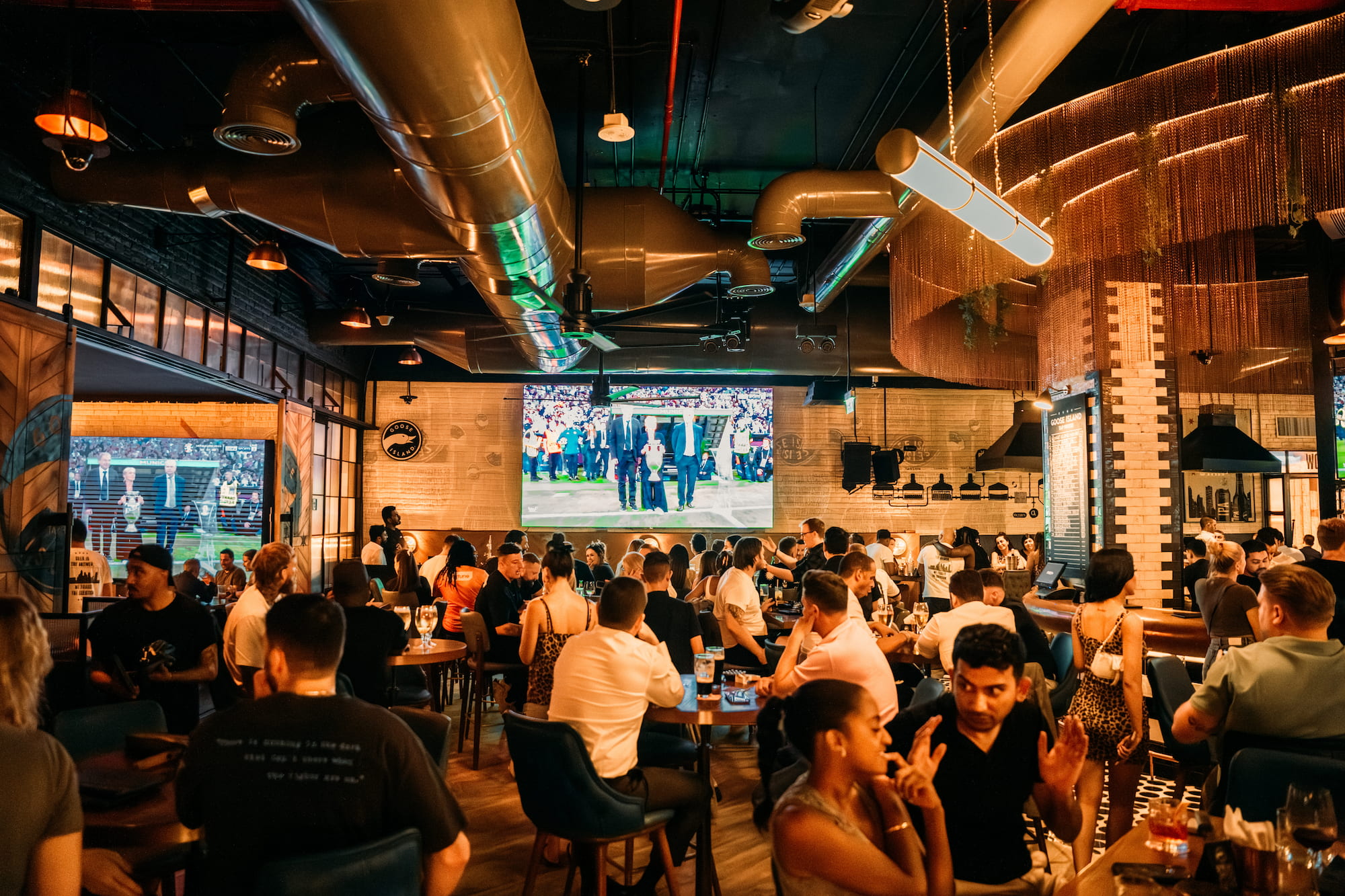 One of the biggest reasons Goose Island JVC is a top choice for watching the Six Nations in Dubai is its unrivalled screen setup. With 19+ giant screens positioned throughout the venue, there’s no bad seat in the house. Whether you’re posted up at the bar, dining with friends, or settling in for a full day of fixtures, you’ll never miss a moment of the action.